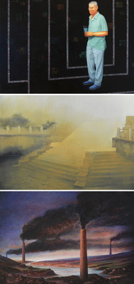 A pszichológusok általában megkülönböztetik az emberi fejlődés azon korszakait, amikor az ún. önszabályozás gyenge (a gyerek nem képes a vágyait visszafogni, várni, kontrollálni az érzelmeit, nem tudja felmérni ennek következményeit) és a látencia korszakát, amikor megtörténik a felismerés, a kilépés az egocentrikus képből, ez pedig energiafelszabadulást eredményez. A Várady Róbert festményein szereplő alakok magukba zárkóznak, befelé figyelnek, mégis érzékelnek, finom, apró jeleket fognak fel a világból. Vagy éppen ők okozzák azokat a levegőben feltűnő rezdüléseket? Felfoghatjuk úgy is, hogy Kondor Attila alkotásai folytatják az önismereti munkát azáltal, hogy stratégiákat ajánlanak a megismeréshez, legyen az meditáció, csönd vagy ima. Ilyenkor nem próbáljuk meg elnyomni a tudatunkat, éppen ellenkezőleg, irányítjuk a figyelmünket, talán éppen a világosabb, a fény keresése a cél. Ez pedig gyakorlást, önfegyelmet, türelmet igényel. Ezekhez a lelki folyamatokhoz önkritikus lelki állomások kapcsolódhatnak. Szurcsik József festményei azt az önreflexív állapotot sejtetik, amikor ott van, a szemünk előtt áll, kézzelfogható és égető az a tűz, mégsem tudhatjuk biztosan, hogy mindez az emberi élet jele, a természeti katasztrófák emberi életet is veszélyeztető képe vagy valamilyen természetfölötti erő megnyilvánulása. A látencia az ébredezés időszaka, ahhoz, hogy lássunk nem elég megdörzsölni a szemünket; a kezünket lassan el kell távolítanunk az arcunktól ahhoz, hogy a fény is utat találjon felénk.