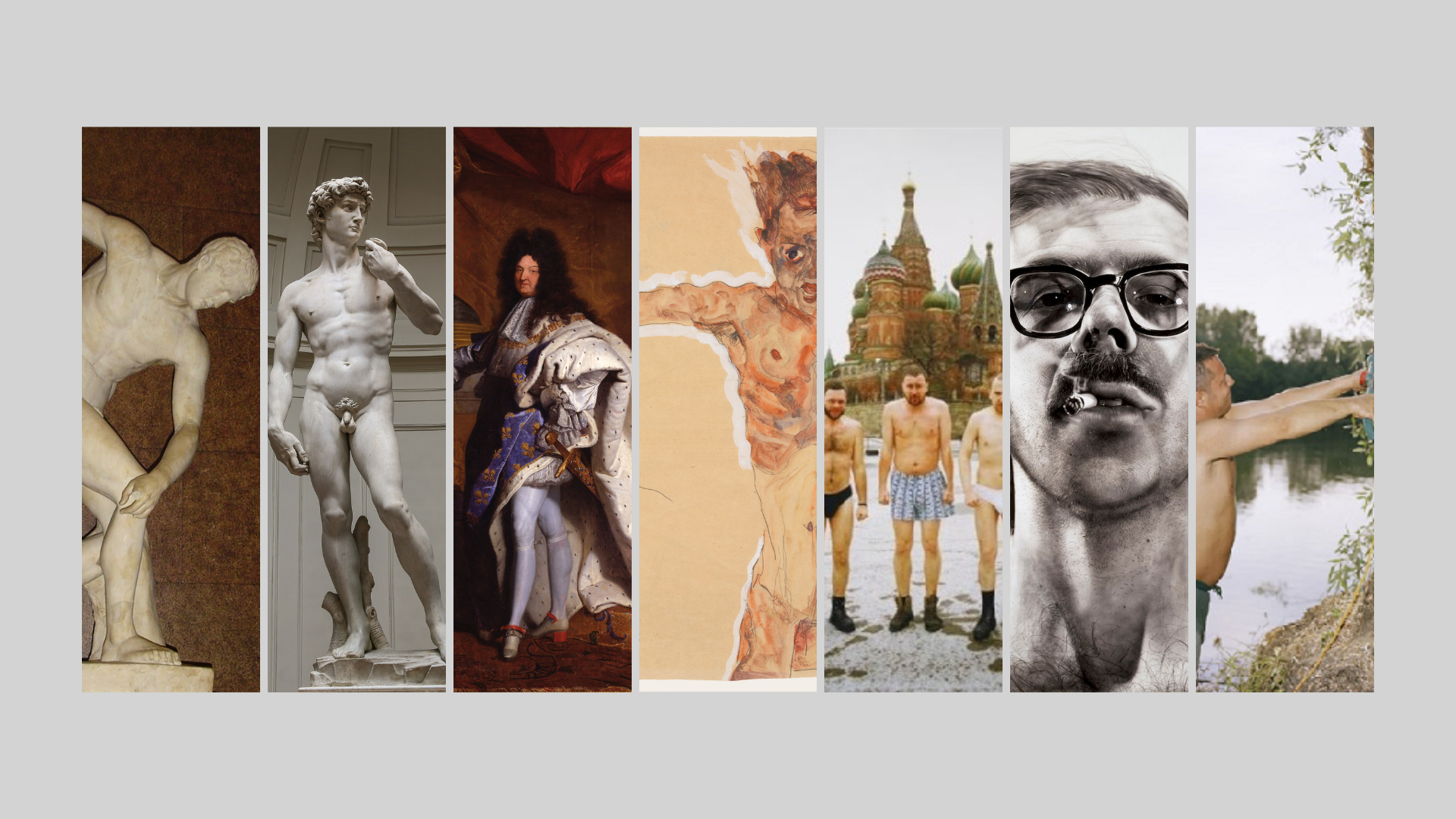 A művészettörténet során is változott a férfiak és a nők ábrázolása. Az ókorban természetes volt a ruhátlan férfiak megjelenítése, a 19. századra azonban már inkább csak a nőket ábrázolták fedetlenül, a meztelen férfi zavarba ejtővé vált. Az előadás arra is kitér, hogy a média férfiképe és a valóság hogyan viszonyul egymáshoz, milyen férfi archetípusokkal találkozni, s hogy bizonyos régi karakterek ma milyen formában jelennek meg a filmvásznon. A kortárs képzőművészet ebben az esetben is inkább társadalomkritikus, a valódi férfiképet szembesíti az ideálokkal.