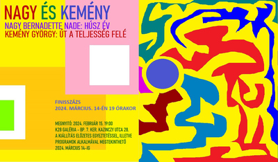 "Két régi motorosok vagyunk, jómagam Főiskola óta, azaz 63 éve vagyok képzőművész és voltam sokáig plakátgrafikus, Nade könyvkereskedés, Írók Boltja után, 20 évvel ezelőtt kezdte el művészi pályáját. Számos csoportos és egyéni kiállításunk volt már, helyszűke miatt nem sorolom, de közös kétfős tárlatunk most van először, ami igen nagy öröm számunkra, hisz együttélésünknek idén fogjuk ünnepelni 25-ik évfordulóját. Ezzel együtt munkáinkban egyáltalán nem utánozzuk egymást, két különböző entitás vagyunk, ami pompás, aki ismeri már, vagy most ismeri meg képeinket, azok számára ez egy perc alatt egyértelmű. Mégis néhány szóban: Nade képei szuperérzékenyek és erőteljesek is egyszerre, a csendtől a kiáltásig, a fehértől a mélyfeketéig minden szerepel munkáiban, változatos és ötletes anyagokat használ, mint például a mosásnál használatos kommersz színfogókat, de mindent kompozícióvá, művé emel. Még az is megjegyzendő, hogy míg Nade képeinek zöme a geometrikus absztrakt stílusba sorolható, ez a mű kivétel, inkább egy lágyan mozgó folyam jut róla eszünkbe. Nálam sem a szuperérzékenység, sem a csend nem jellemző, plakátos évtizedeimben és párhuzamos, máig készülő képeimben, plasztikáimban a tubus színek, az erős hangvétel a jellemző. Plakátjaim egykor odavonzották még messziről is a tekintetet, és 1968-ban, az Amerikában is épp csúcsra járt Pop Art idején a Fészek Klubban harsány Pop Art stílusú kiállításom okán jeles fiatal művészettörténészek, galériások a stílus egyik akkori vezető művészének tartanak, mára már az egykori tárlat több darabja jelentős hazai és külföldi múzeumok tulajdona. Nagyot ugorva: ezen a közös K28 Galériában rendezett kiállításunkon Nade húsz évnyi munkáiból és a legújabbakból válogatta anyagát, én pedig 2023. november 6. és december 22. között készült „Út a teljesség felé”, egyik legkedvesebb költőmtől, Weöres Sándortól elcsent című 32 darabos képsoromból emeltem a galéria falaira hetet, köztük egyet az általam kedvelt igen nagy méretben. Számunkra is izgalmas meglepetés, hogy milyenek képeink itt és most és együtt. Ennek megítélésére nagy szeretettel várunk mindenkit a megnyitóra, a kiállításra, a kísérő eseményekre."