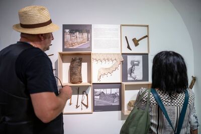 Sz. Tóth Judit etnográfus záró tárlatvezetése a Takarékos módi - Néprajzi kiállítás a környezetbarát tárgyhasználatról c. kiállításon.