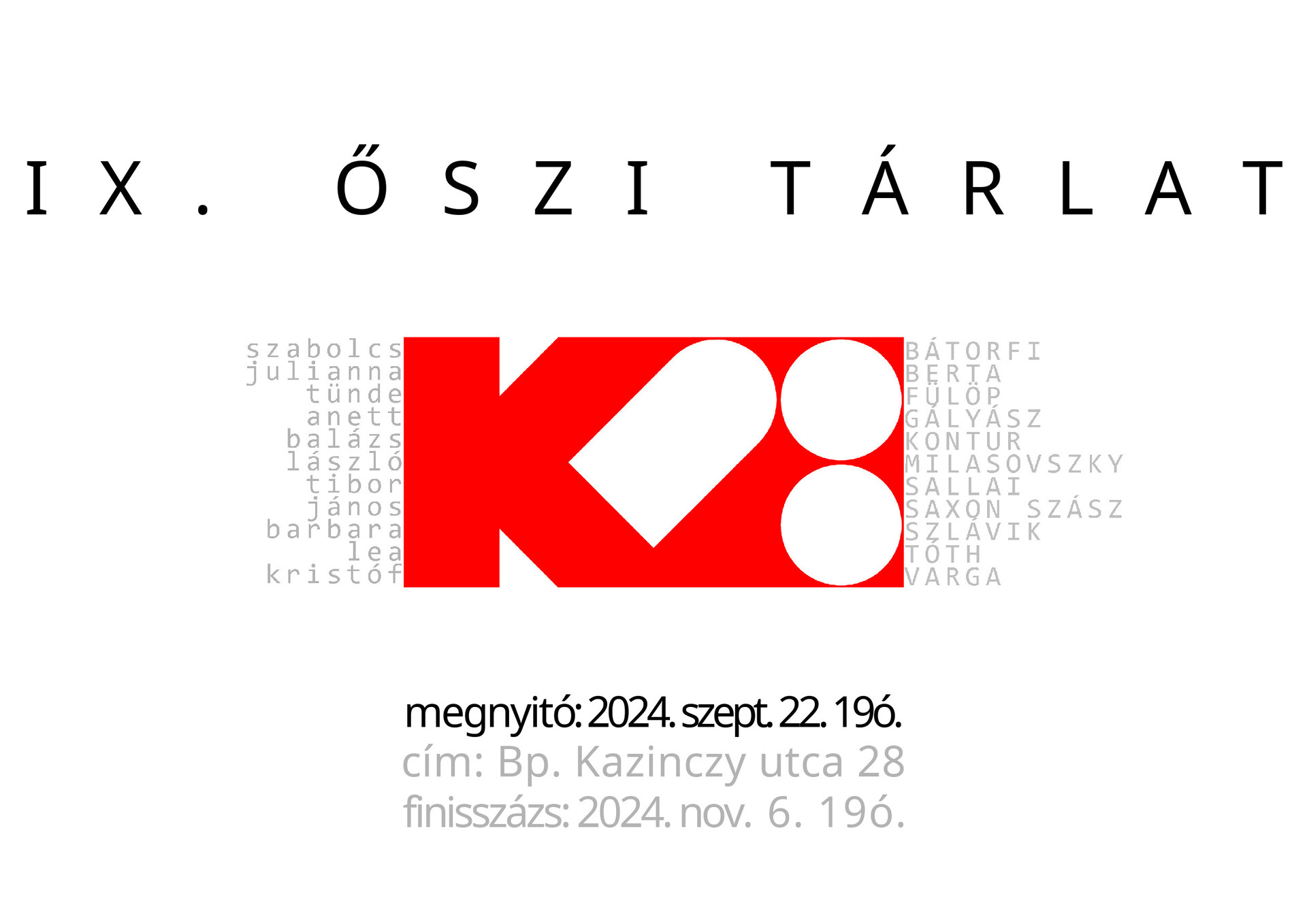 helyszín: K28 Galéria, Budapest, 7.ker. Kazinczy utca 28.