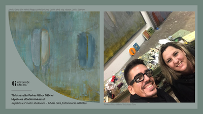 Juhász Dóra festőművész Repetitio est mater studiorum című kiállításán Farkas Gábriel képző- és előadóművész tart tárlatvezetést, amely során lehetőség lesz megismerni a kiállító művész nonfiguratív, gesztusalapú, színekben gazdag festészetét. Juhász Dóra művein több mint két évtizede számtalan méretben, színváltozatban és mennyiségben jelenik meg a csendéletek tojásmotívumából eredeztethető, emblematikus, ovális forma, amely az évek alatt számos átalakuláson ment át. A függőleges tengelyű, organikus, ovális alakzatok eleinte „aurával” körbevett pöttyök voltak, amely formát idővel két vonásból festett meg és nagyított fel a művész. Az így létrejövő szimmetrikus, nem tökéletes, nem teljesen zárt, magszerű mintázat egy kezdeti, romlatlan állapot szimbólumaként is értelmezhető, amelyben teremtő energia rejlik.