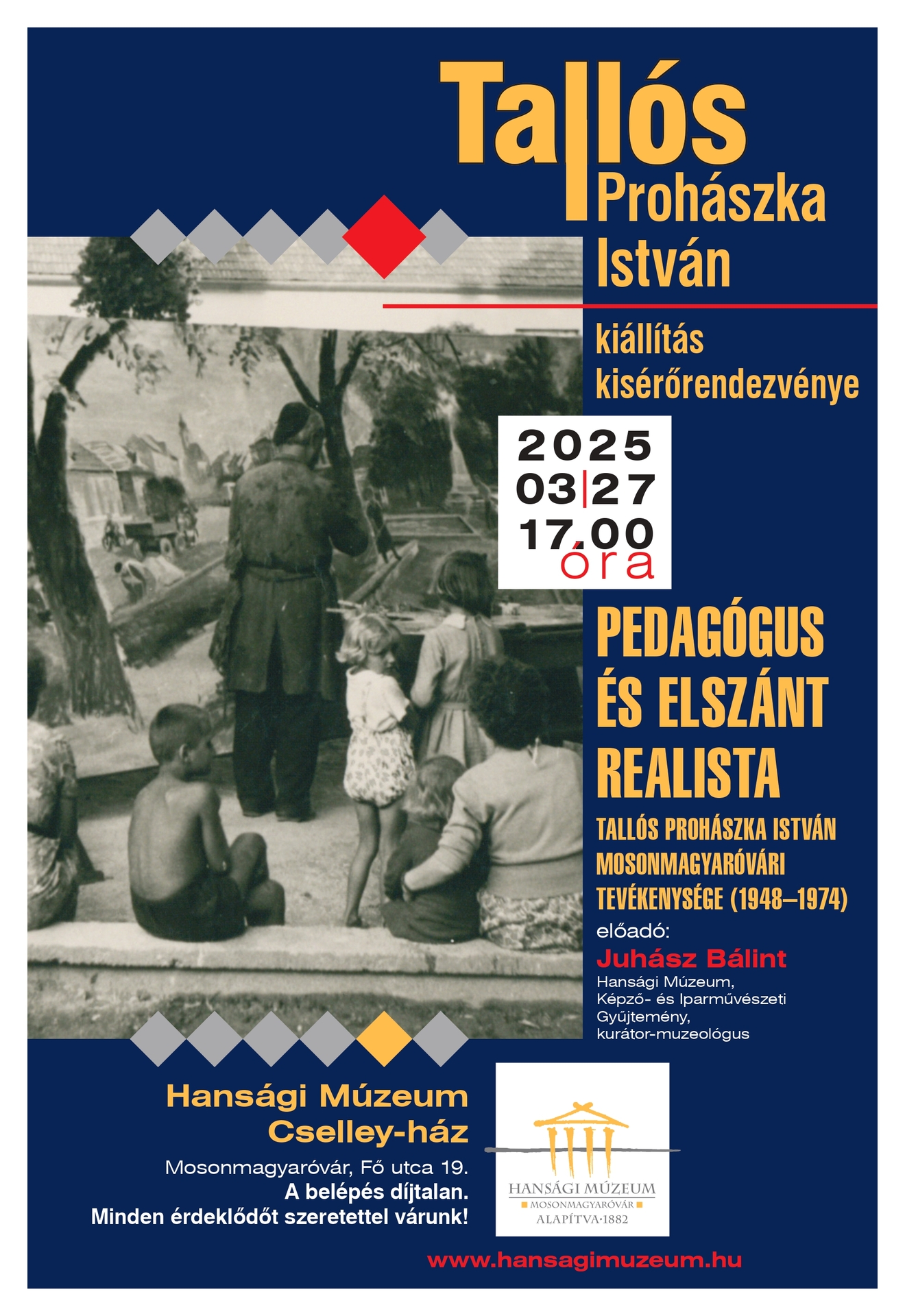 A prezentációt Juhász Bálint tartaná meg aki a mosonmagyaróvári Hansági Múzeum Képző- és Iparművészeti Gyűjteményének kezelője és kurátora.