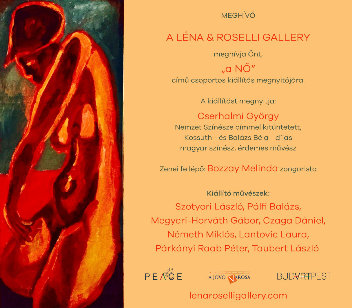 Ezúton tisztelettel meghívjuk Önöket a LÉNA & ROSELLI GALLERY „A NŐ” című csoportos kiállításának ünnepélyes megnyitójára, amelyre 2026. március 5-én (csütörtökön) 17:00 órakor kerül sor.