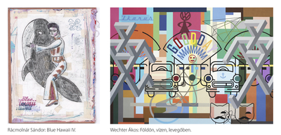 Rácmolnár Sándor és Wechter Ákos új, közös kiállítása, A lehetőségek horizontja a kortárs ember belső tájékozódását és jövőképeinek sokszínűségét vizsgálja. A most bemutatott anyag finoman kapcsolódik korábbi, a Bartók 32 Galériában rendezett Pantheon trivial című tárlatukhoz: Ezúttal is az irónia és a groteszk elemek használata teremti meg a két alkotó közös vizuális terét. Rácmolnár ikonikus Elvis-motívuma és Wechter Ákos játékosan újraértelmezett Orion-emblémái egyszerre idézik fel a popkultúra és a technikatörténet sajátos mitológiáit. A képek így nemcsak identitás- és kapaszkodókeresésről szólnak, hanem arról a sokféle, gyakran egymásnak feszülő jelképrendszerről, amelyből a modern ember igyekszik kiépíteni a maga személyes horizontját.