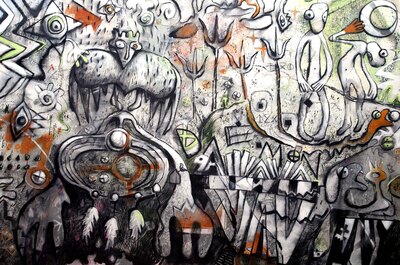 A kiállítási anyag azokat a láthatatlan rétegeket kutatja, amelyek az emberi kultúra és képzelet mélyében húzódnak. A festmények ősi szimbólumokat, mitikus lényeket és rituális formákat idéznek meg, amelyek az emberiség kollektív emlékezetének részei. Ezek a motívumok nem konkrét történeteket mesélnek el, hanem egy mélyebb, archetipikus tudást hordoznak – olyan képi nyelvet, amely generációkon át öröklődik.